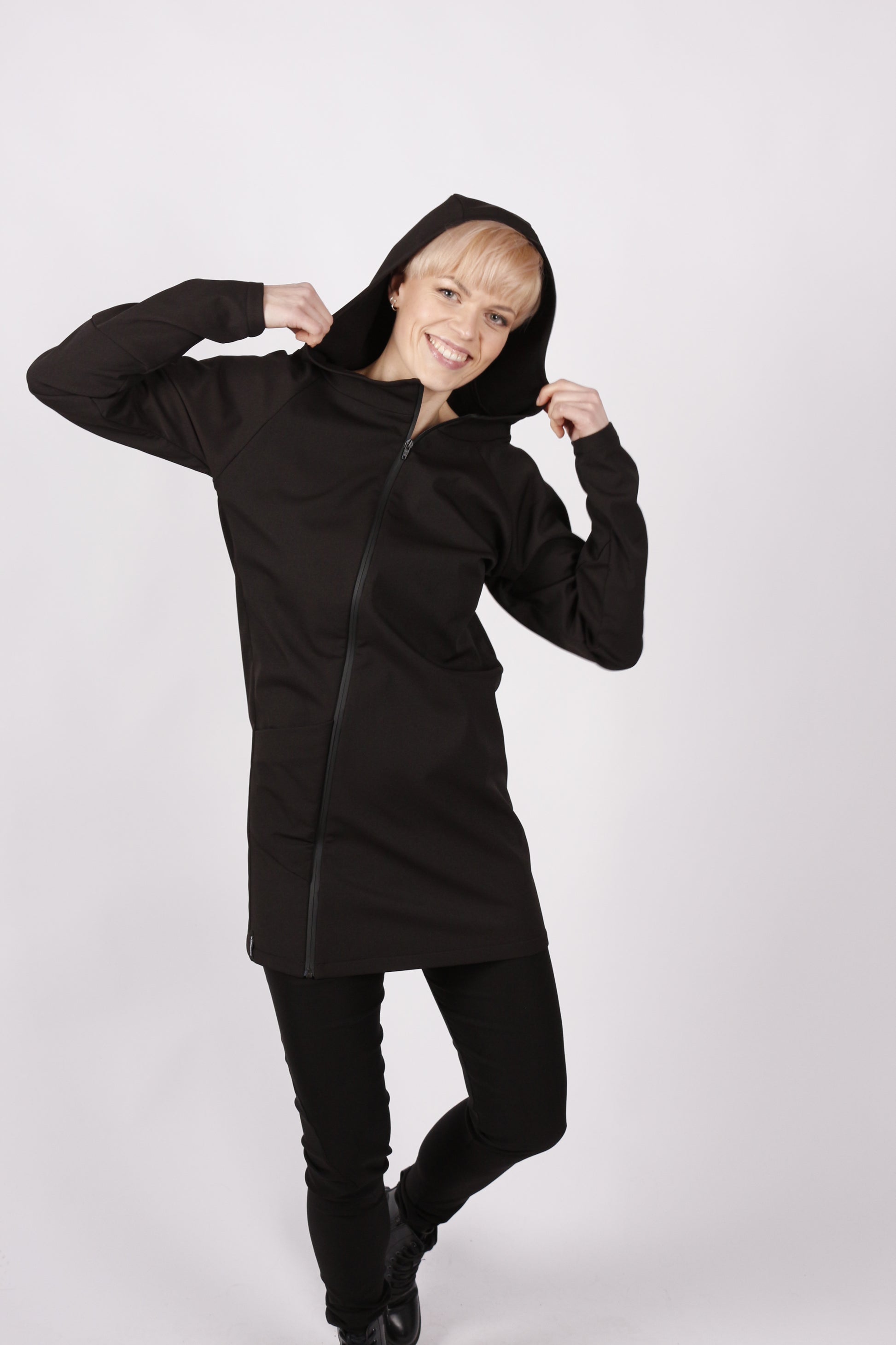 Die Kapuze verleiht der Jacke eine lässige Note, während der schräge Reißverschluss und die klare asymmetrische Schnittführung für den typischen Kaseee-Look sorgen. Ob als sportlicher Alltagsbegleiter oder als schickes Statement-Piece – diese Jacke ist ein funktionales Basic mit besonderem Designanspruch.