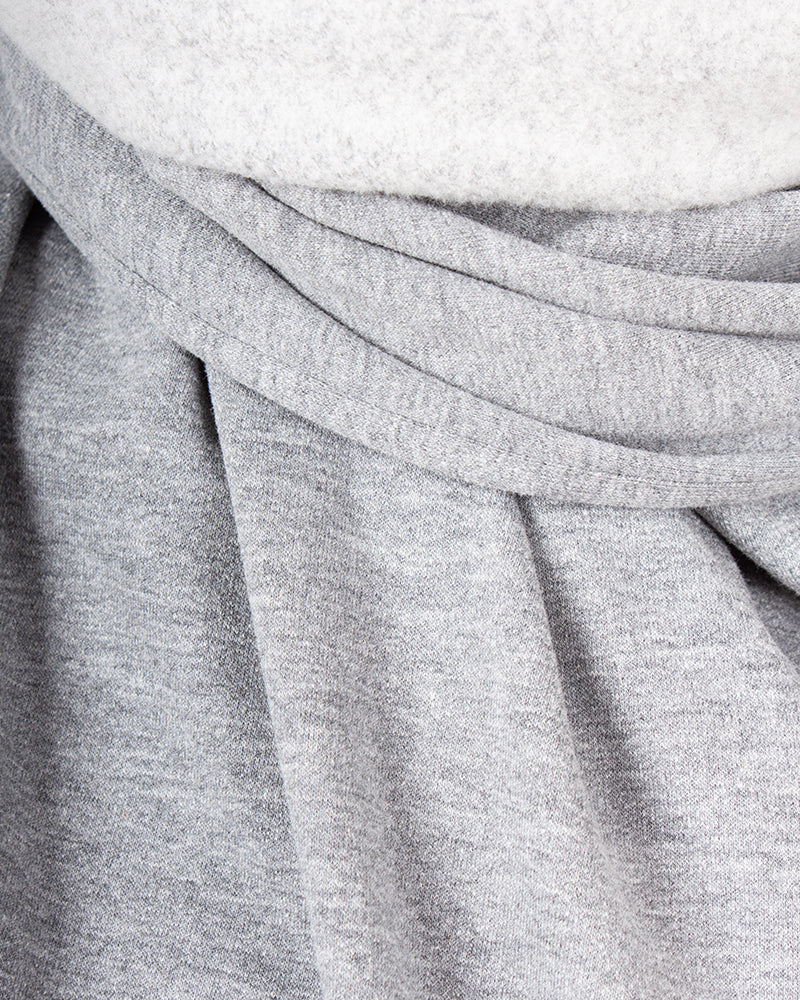 Dieses kaseee Kleid mit großem Kragen aus angerautem Sweatstoff ist kuschlig warm. Die Schärpe lässt sich ideal als Schal drapieren oder als Rock umlegen. Die Ärmel sind 3/4 lang.