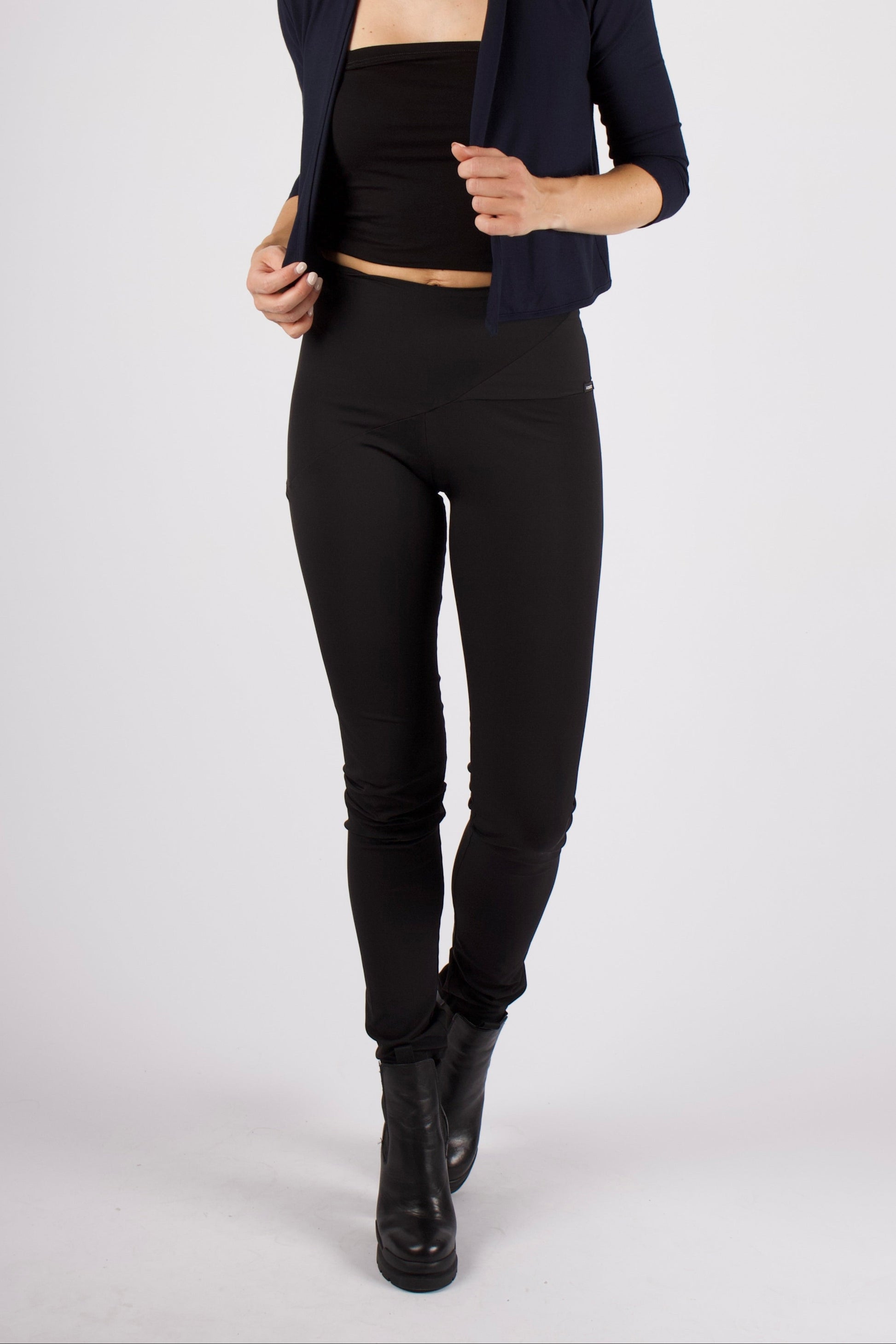 Die Hose ist zum Reinschlüpfen gemacht und sitzt dank des elastischen Bundes perfekt ohne einzuengen. Asymmetrisch verlaufende Nähte im Schritt- und Hüftbereich setzen dezente Designakzente und betonen geschickt Taille und Po. Der etwas höhere Bund unterstreicht die feminine Form.