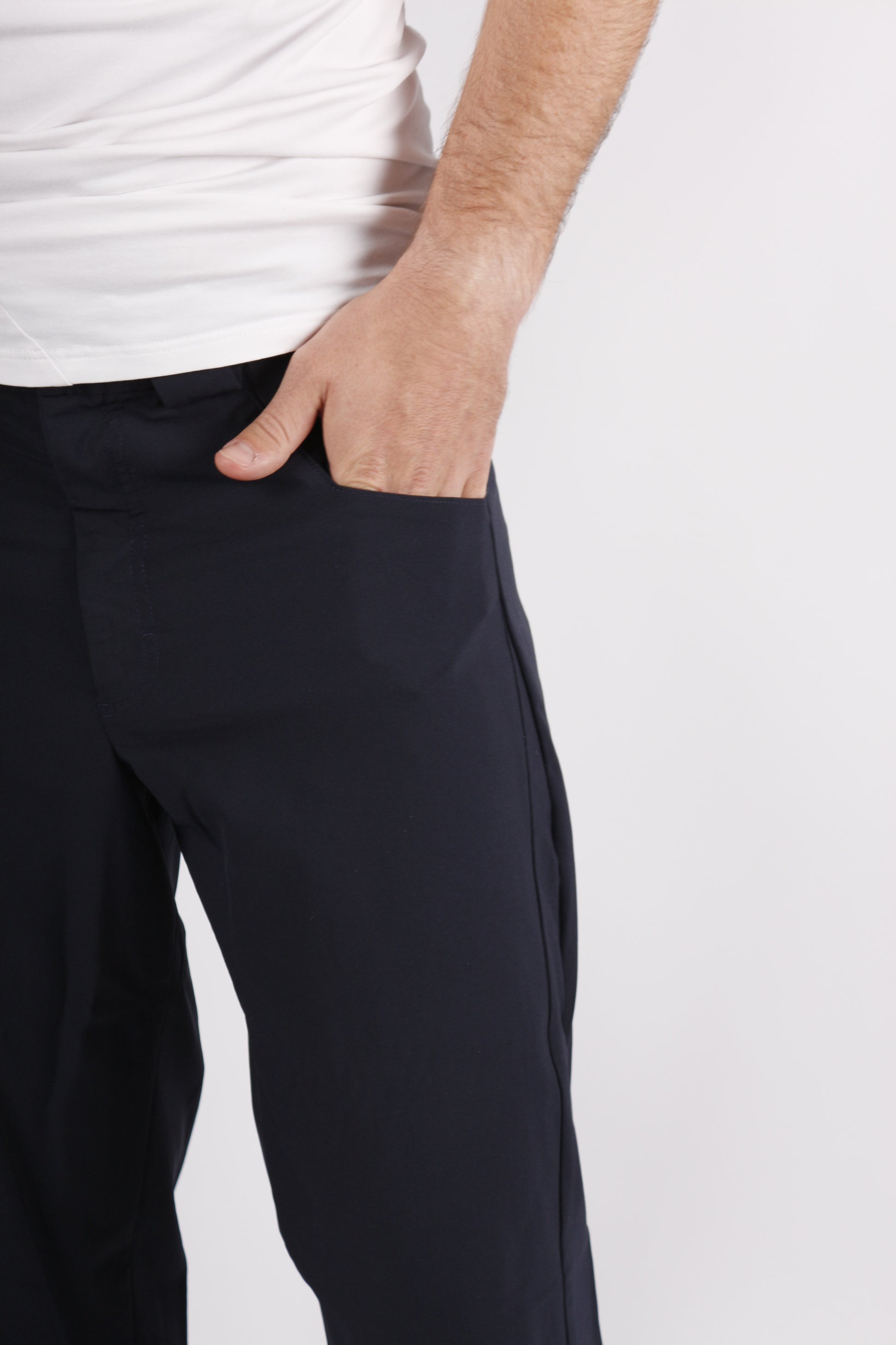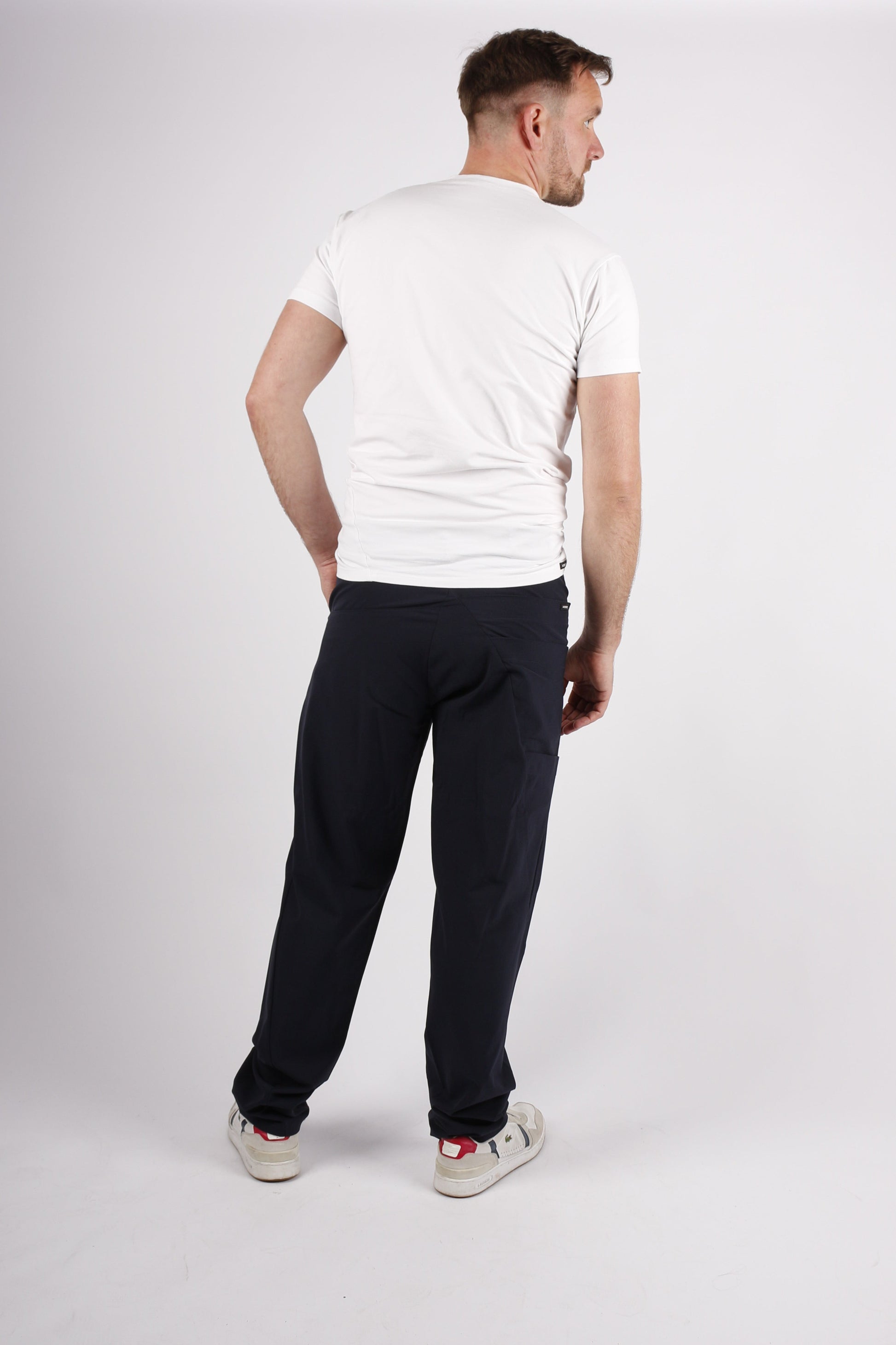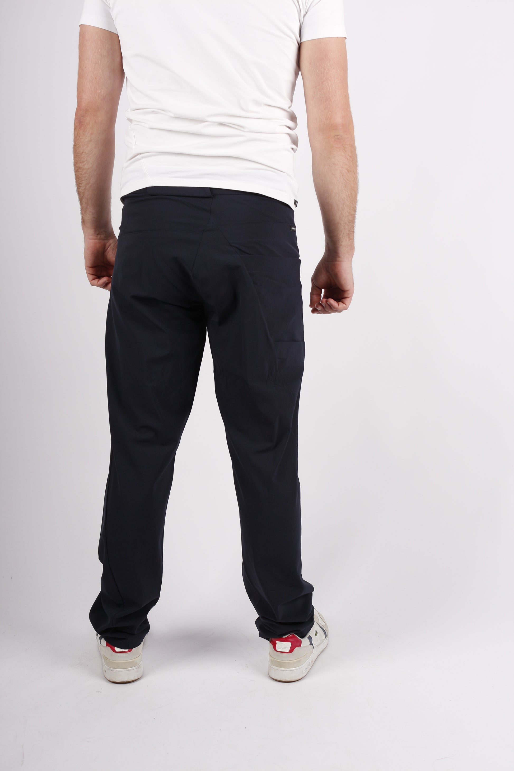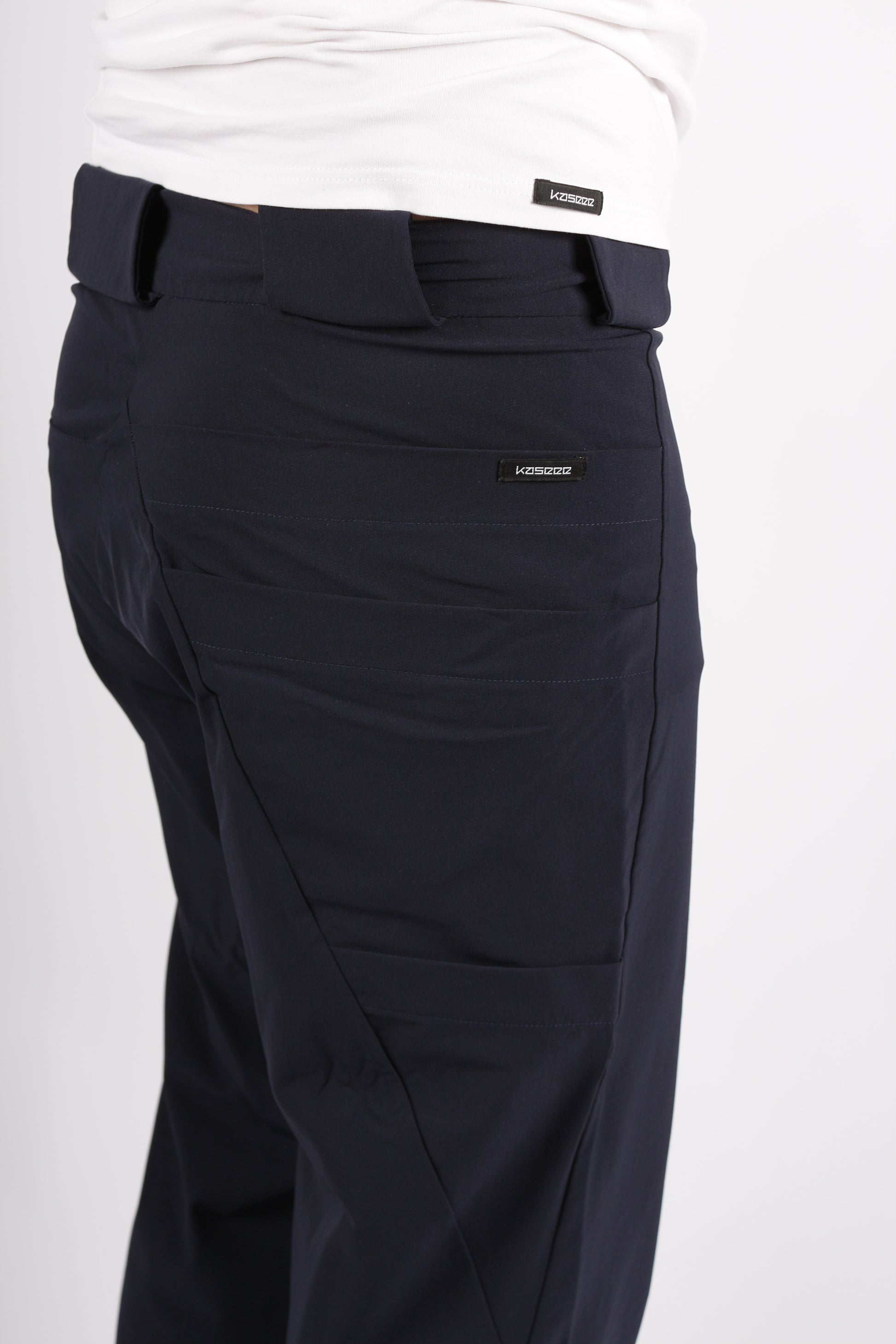 Diese Hose aus hochwertigem, strapazierfähigem Funktionsstoff vereint Funktionalität mit avantgardistischem Design. Asymmetrisch gesetzte Nähte und stufenartig verlaufende Dreieckstaschen schaffen einen modernen Look mit Wiedererkennungswert. Die Taschen schmiegen sich dabei leicht an die Oberschenkel und bringen eine besondere Dynamik in die Silhouette.