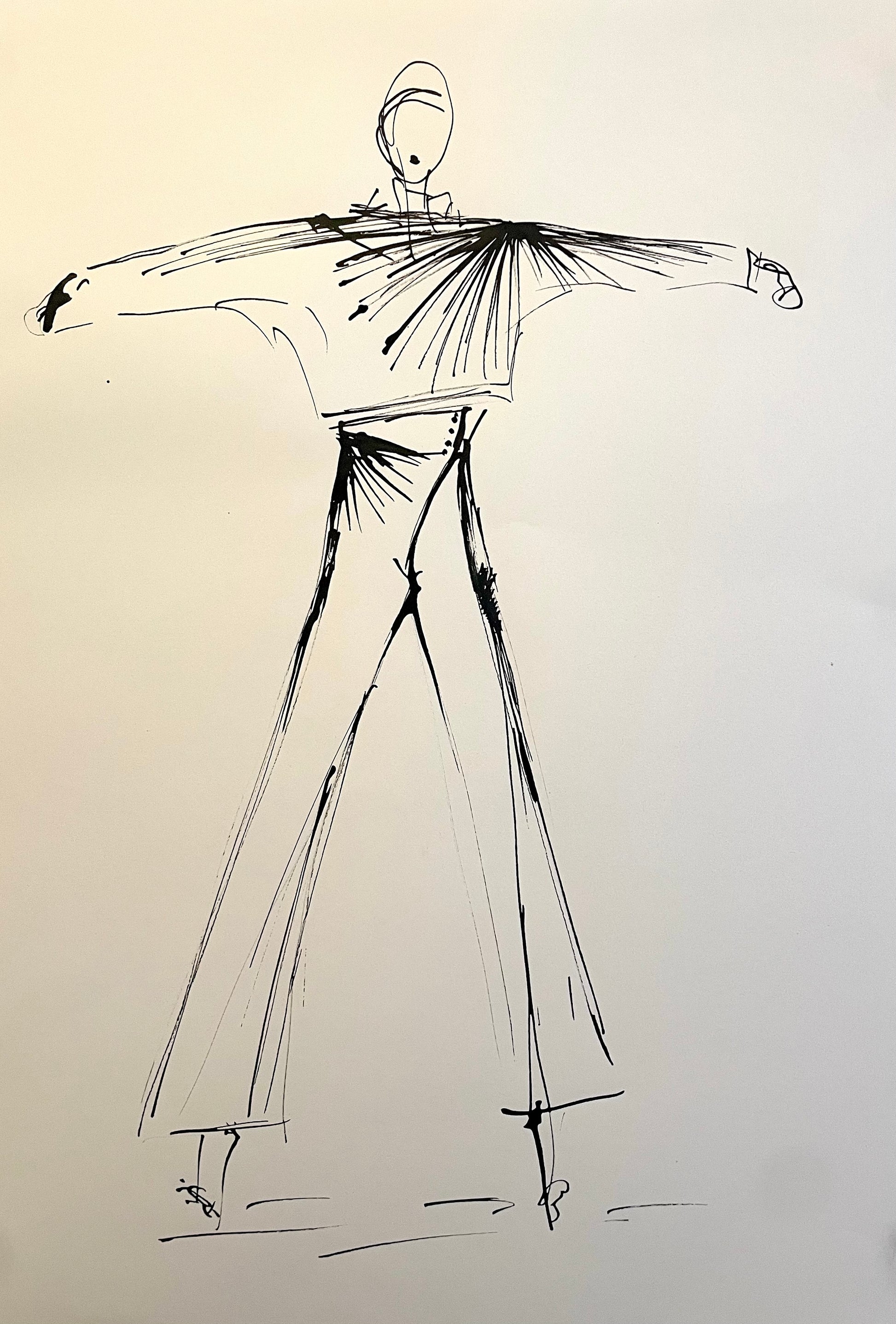 Diese Modezeichnung von Katrin Sergejew vereint kreative Intuition mit modischem Feingefühl. Die Figur wirkt lebendig, kraftvoll und zugleich elegant – eine Momentaufnahme aus dem kreativen Schaffensprozess, die sich auch in den realen Kaseee-Kollektionen wiederfindet. Hier zu sehen ein Entwurf aus der Kollektion Magie 2026.
