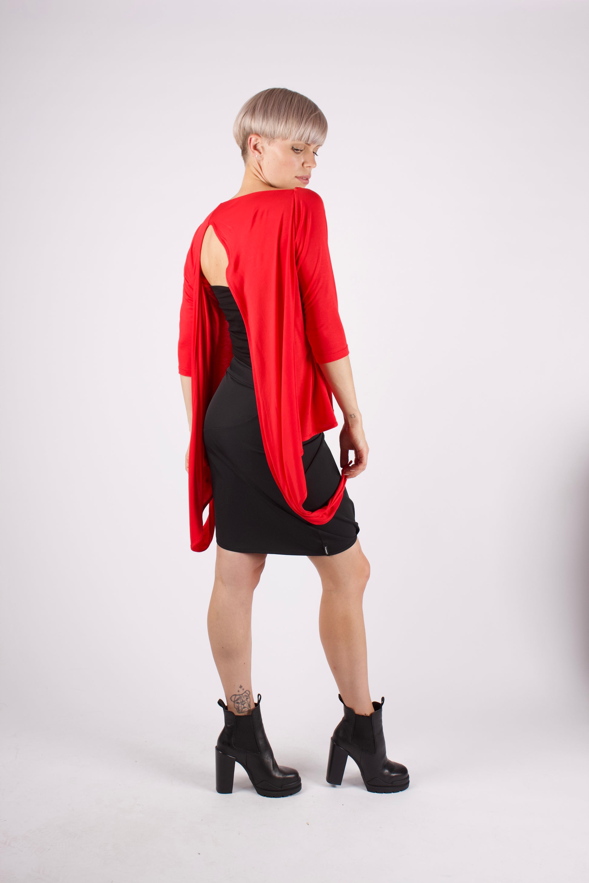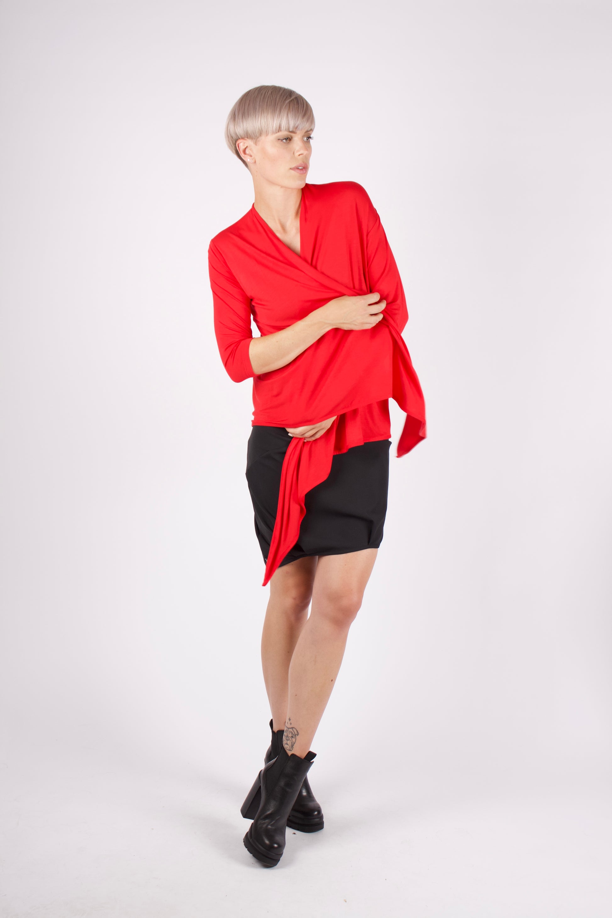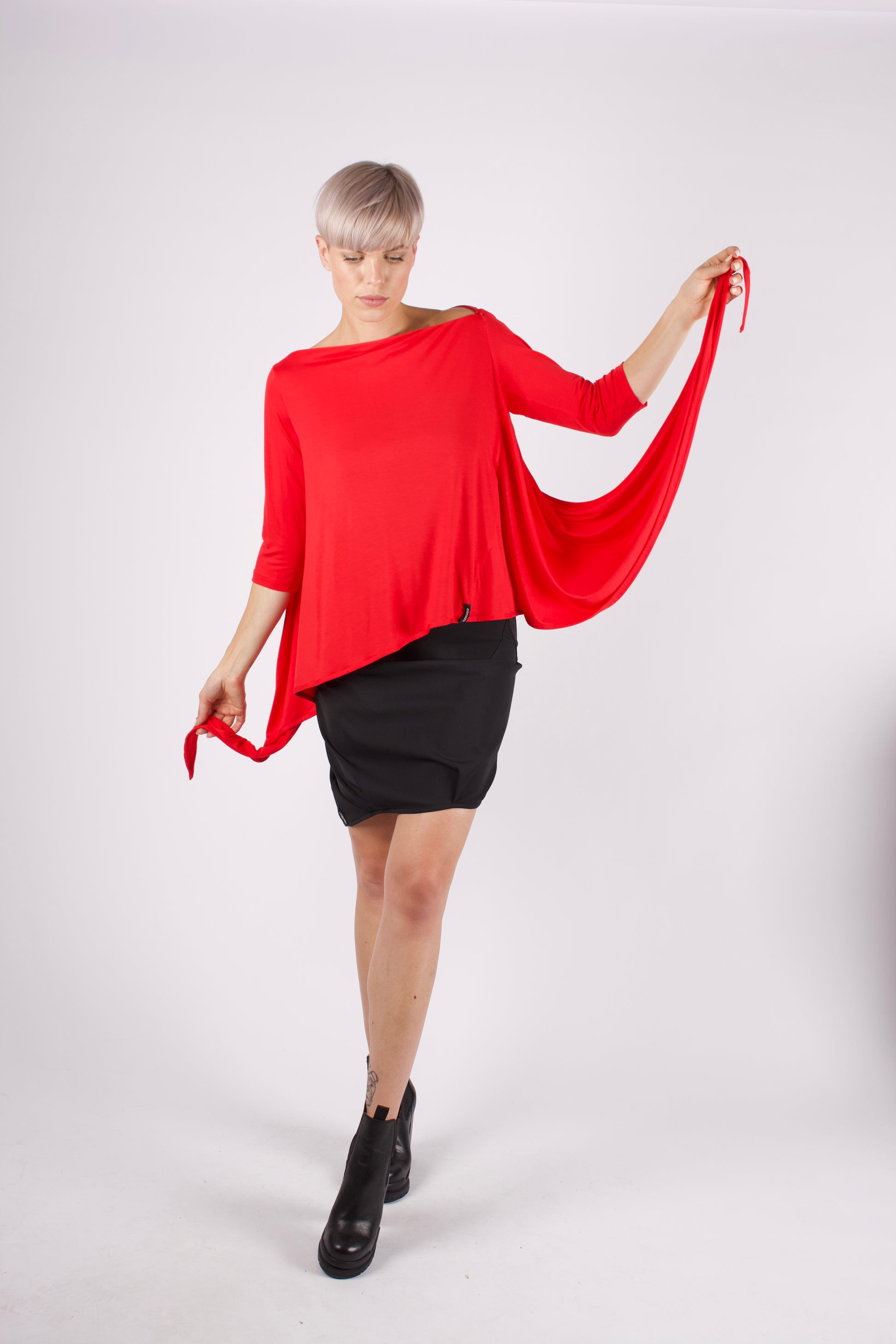 Das Besondere: Vorder- und Rückseite lassen sich variabel tragen, wodurch sich je nach Styling unterschiedliche Looks ergeben. Bindet man die Ärmel im Nacken zusammen, entsteht ein sommerlicher Neckholder-Stil – perfekt für warme Tage. Der weiche Bambus Jersey trägt sich angenehm auf der Haut und macht das Teil zum idealen Begleiter für Reisen, Alltag oder besondere Momente.