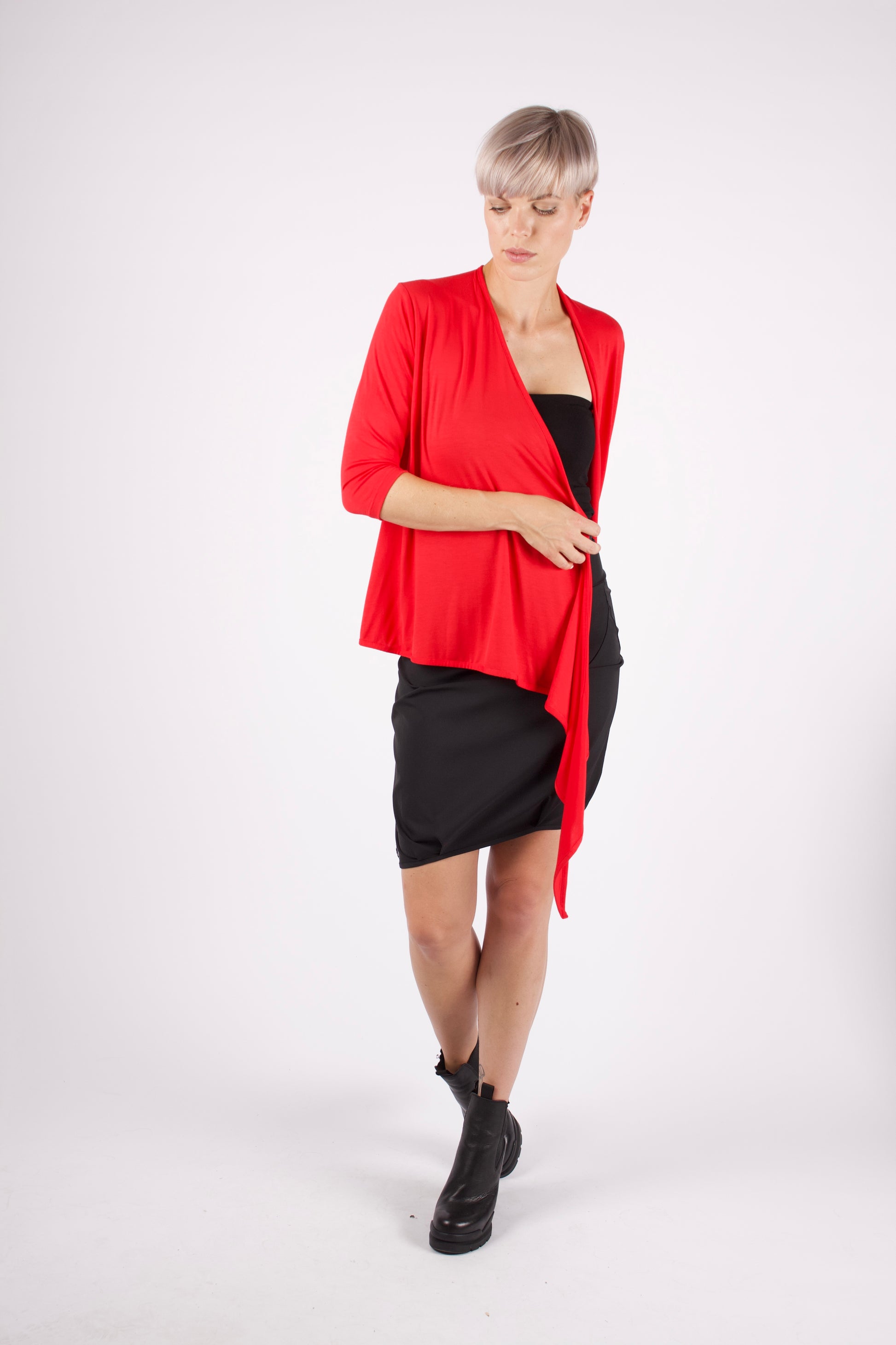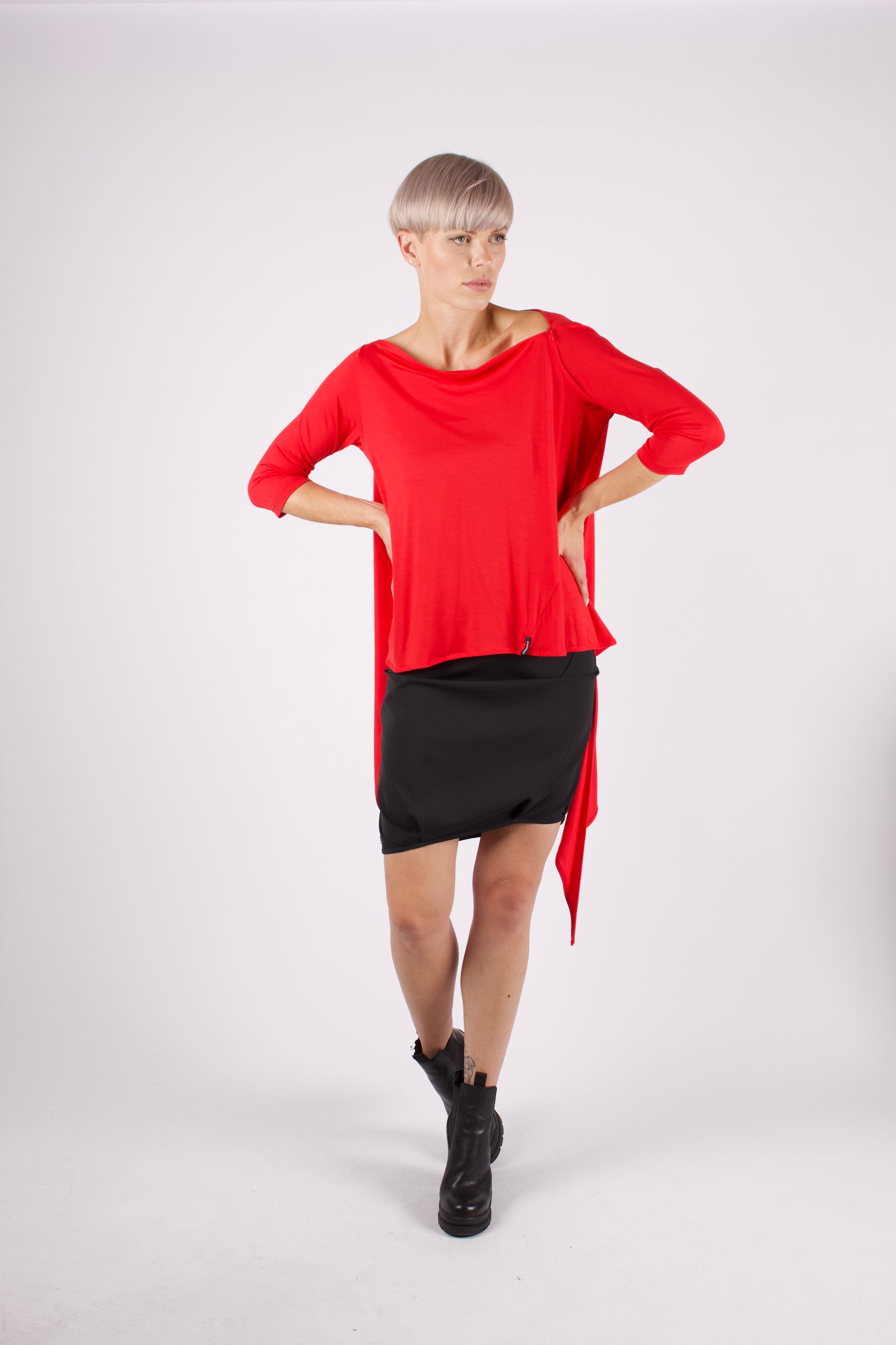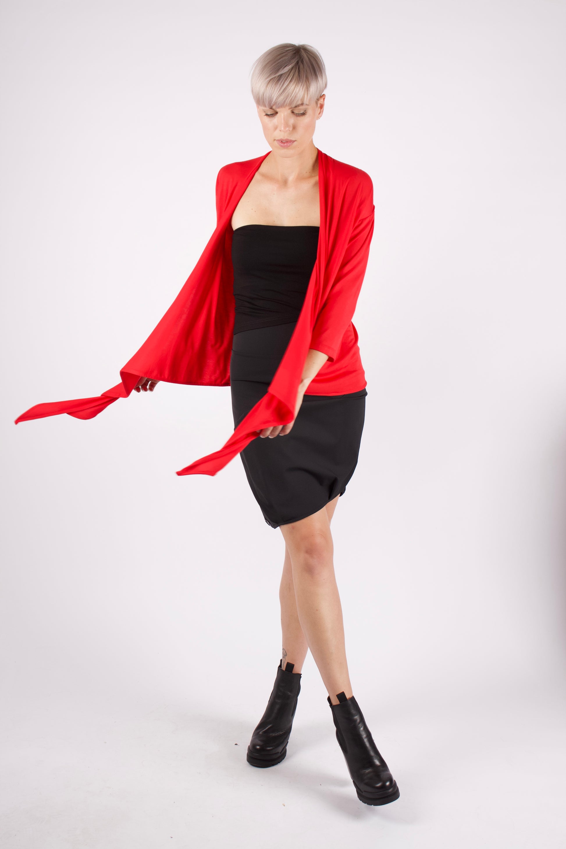 Das Besondere: Vorder- und Rückseite lassen sich variabel tragen, wodurch sich je nach Styling unterschiedliche Looks ergeben. Bindet man die Ärmel im Nacken zusammen, entsteht ein sommerlicher Neckholder-Stil – perfekt für warme Tage. Der weiche Bambus Jersey trägt sich angenehm auf der Haut und macht das Teil zum idealen Begleiter für Reisen, Alltag oder besondere Momente.