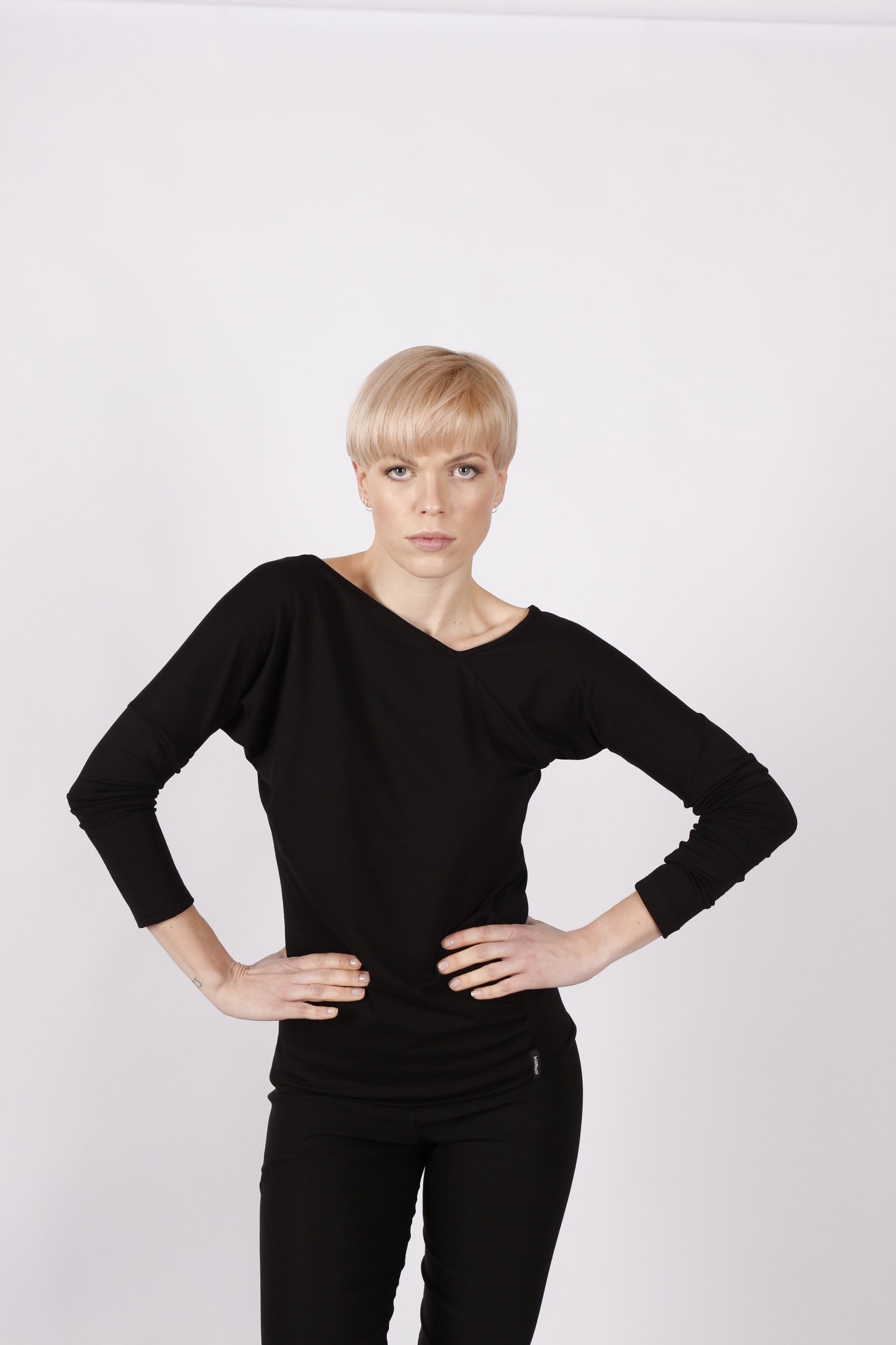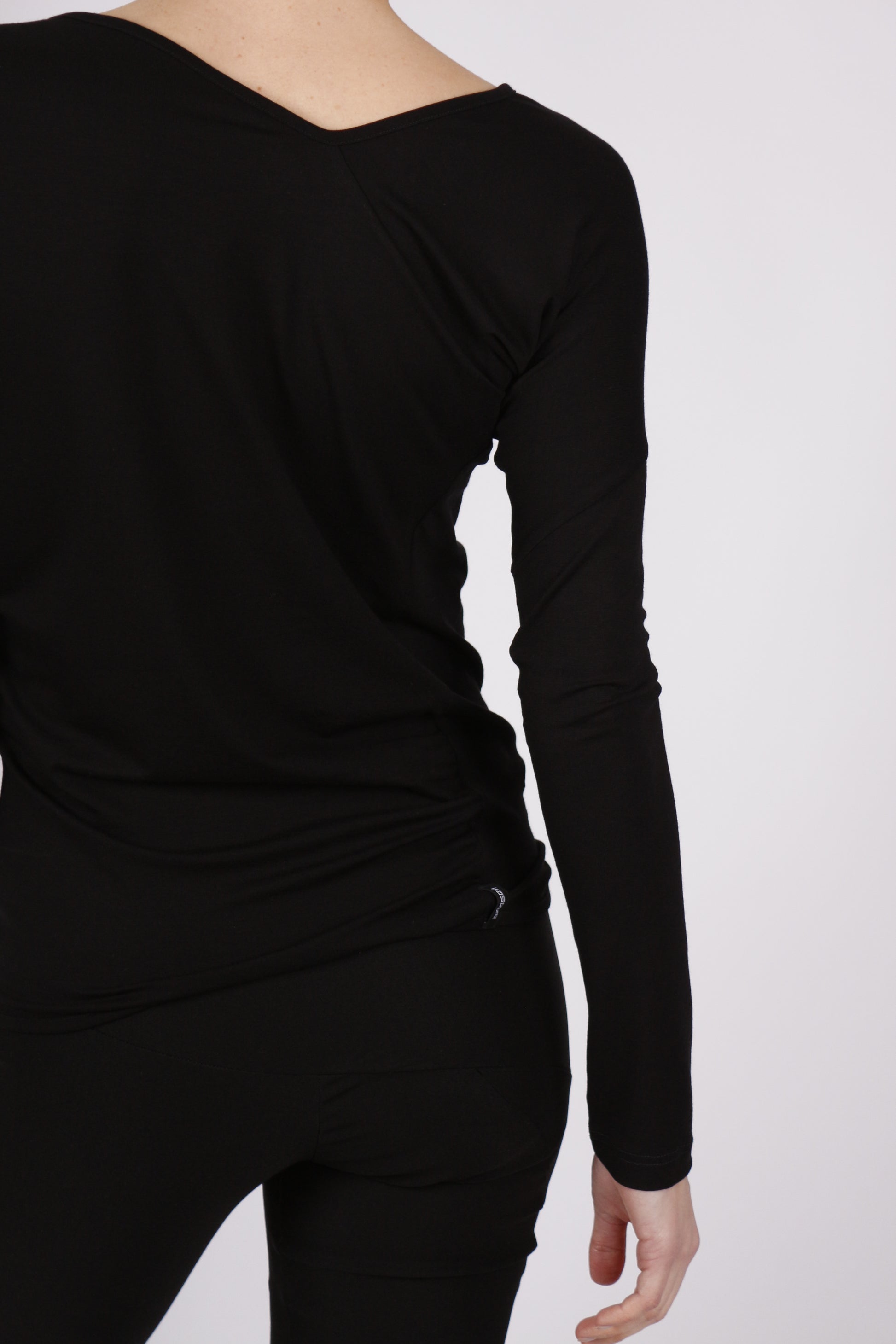 Das Kaseee WireShirt ist ein vielseitiges Oberteil, das sich ganz nach Stimmung oder Anlass tragen lässt: Vorder- und Rückseite sind austauschbar – je nachdem, ob du lieber den asymmetrischen oder symmetrischen Ausschnitt vorne tragen möchtest. Die seitliche Raffung bringt Bewegung in den Stoff und umspielt die Figur sanft und schmeichelhaft.